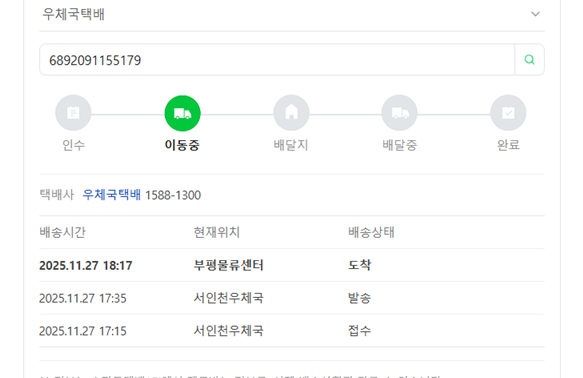 우체국 배달지 미 도착으로 내일 오전으로 받아 보기 어려울듯 합니다.