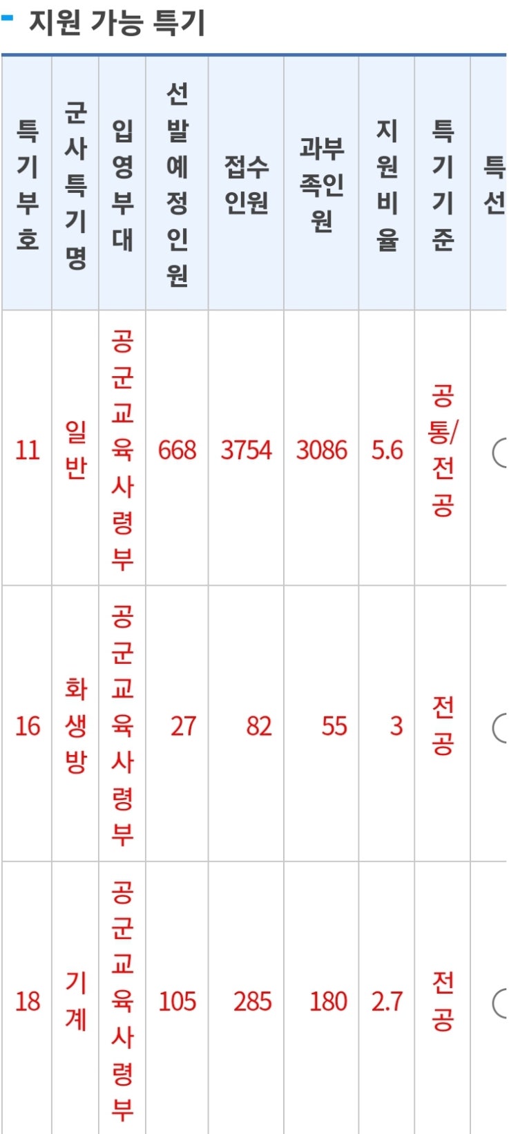 가능한건 일반, 화생방, 기계 특기에 지원 가능합니다